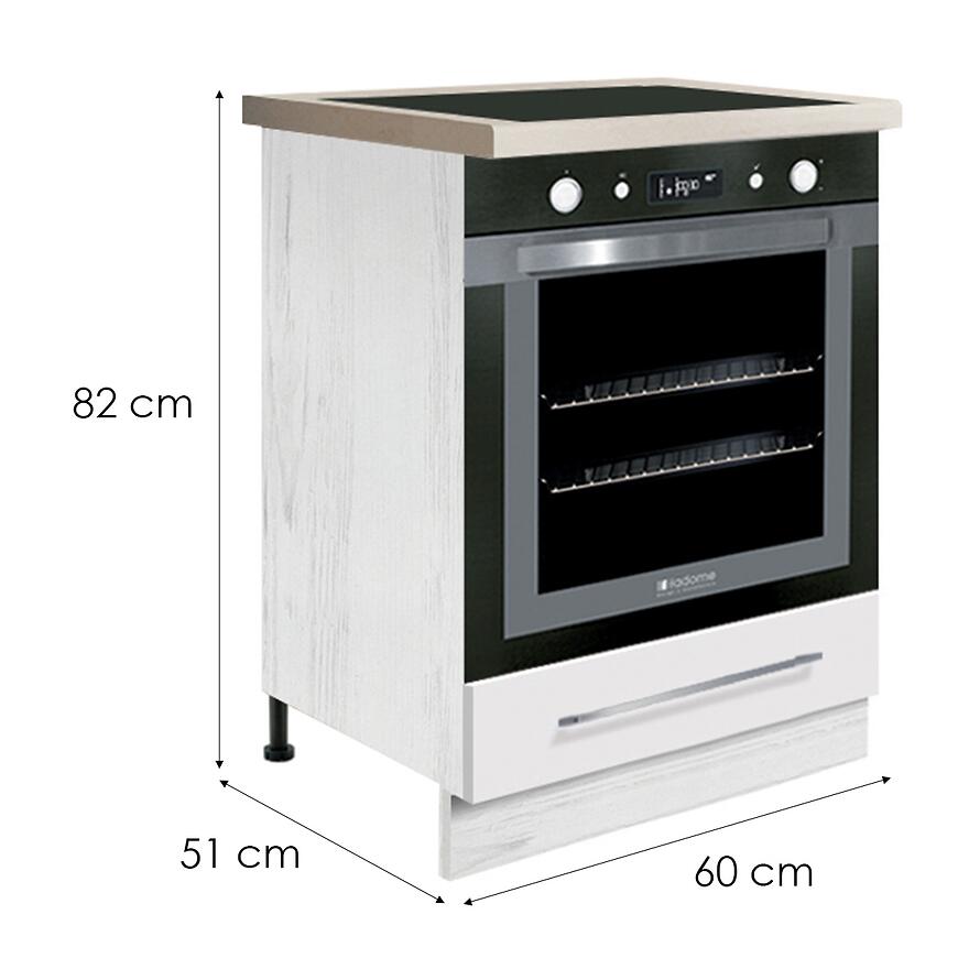 Fronty wykonane z laminowanej płyty wiórowej wykończone na wysoki połysk odbijają światło, optycznie powiększając przestrzeń. Korpus w matowym wykończeniu zapewnia trwałość i odporność na codzienne użytkowanie. Szafka należy do kategorii szafek kuchennych dolnych, dzięki czemu stanowi solidną bazę pod zabudowę kuchenną.