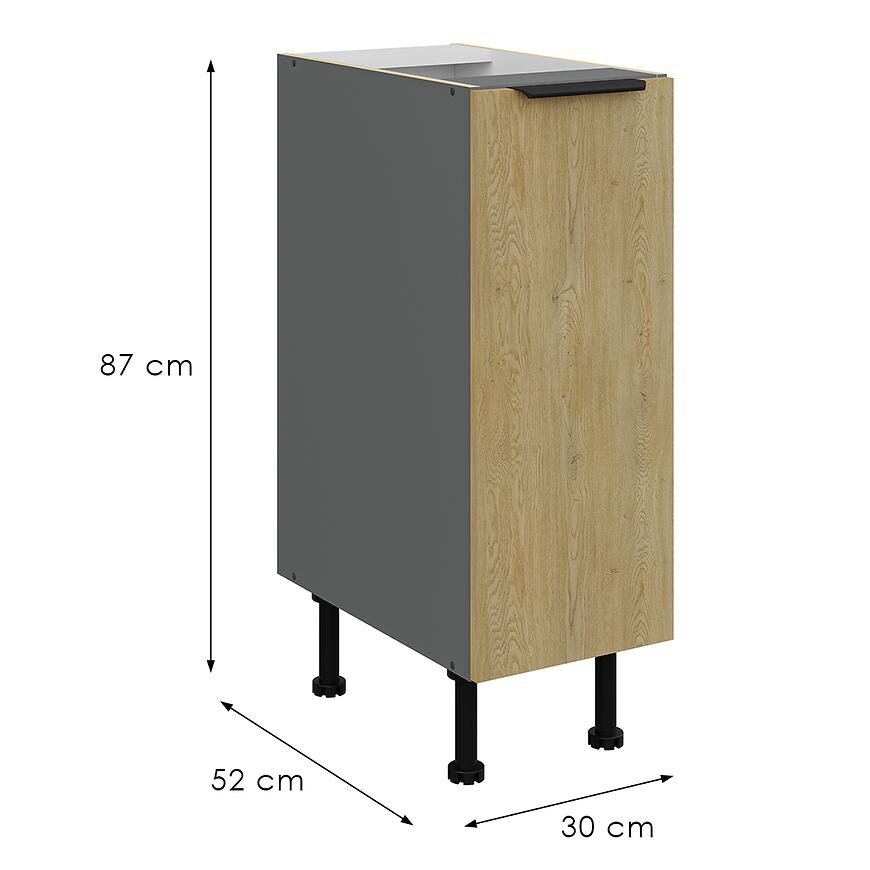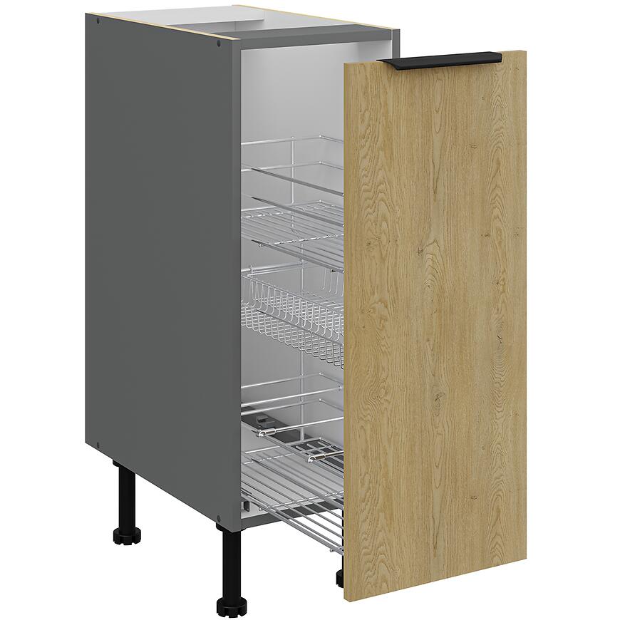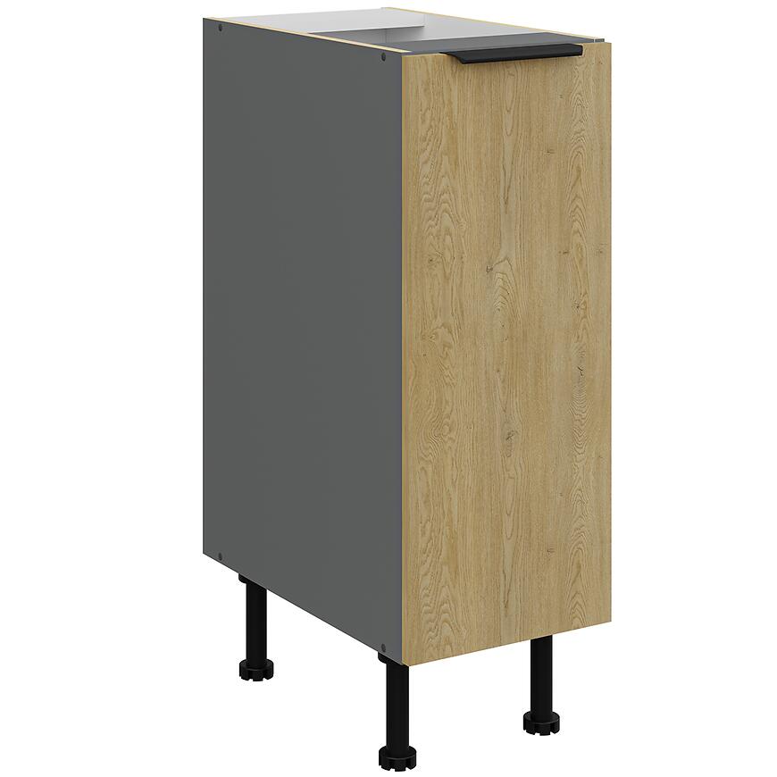 Fronty w kolorze dąb Cremona doskonale komponują się z korpusem w odcieniu antracytu, tworząc harmonijną i modną całość, która wpisuje się w najnowsze trendy aranżacyjne. Ta wyjątkowa kolorystyka sprawia, że szafka Cremona idealnie pasuje zarówno do kuchni urządzonych w stylu nowoczesnym, jak i klasycznym.