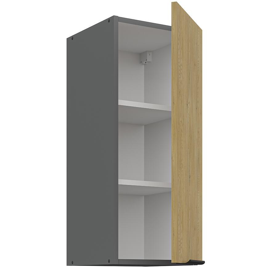 Szafka kuchenna Cremona to połączenie stylowego designu i praktycznych rozwiązań, które idealnie wpisują się w potrzeby współczesnych wnętrz. Należąca do kolekcji CREMONA, zachwyca eleganckim połączeniem kolorów – fronty w odcieniu dąb cremona doskonale komponują się z antracytowym korpusem, tworząc harmonijną, nowoczesną całość. Matowe wykończenie podkreśla subtelny charakter mebla i dodaje mu szlachetności, dzięki czemu świetnie prezentuje się zarówno w klasycznych, jak i minimalistycznych aranżacjach kuchni.