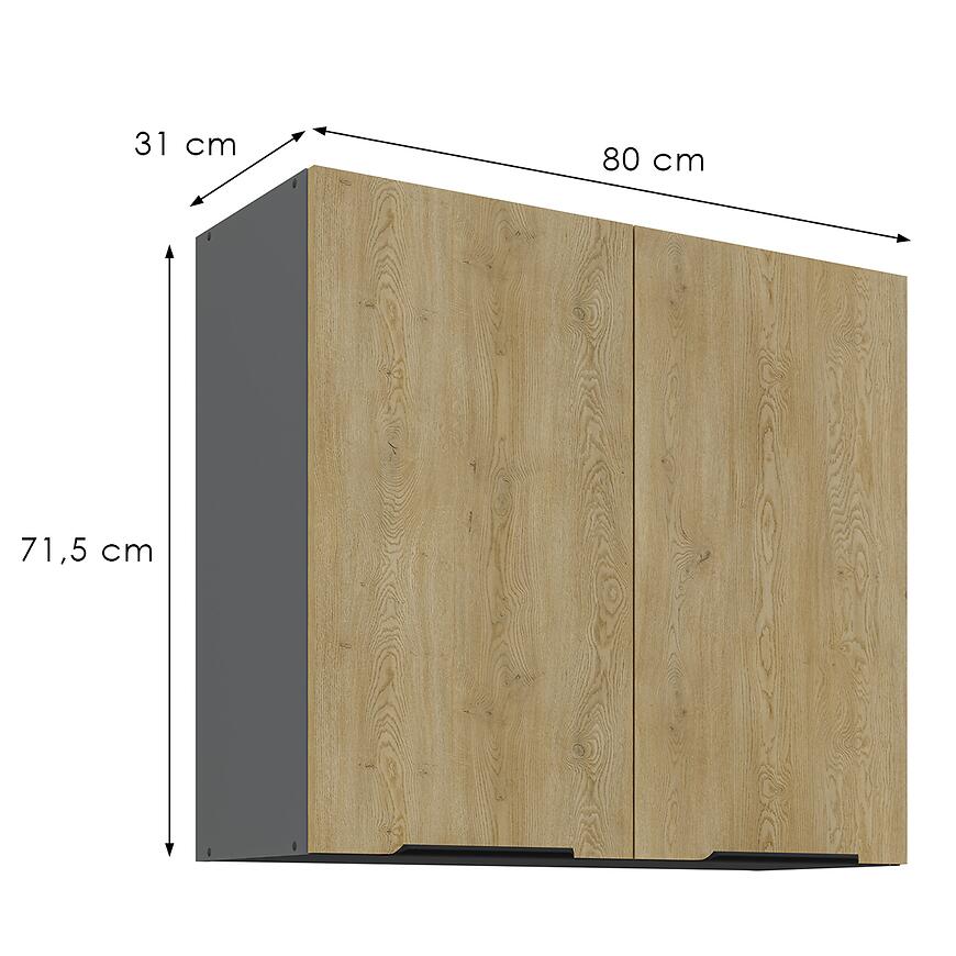 Konstrukcja szafki została wykonana z płyty wiórowej laminowanej, co gwarantuje wysoką trwałość, odporność na uszkodzenia mechaniczne oraz łatwość w utrzymaniu czystości. Solidne wykonanie sprawia, że szafka przez długi czas zachowa swój nienaganny wygląd i funkcjonalność.