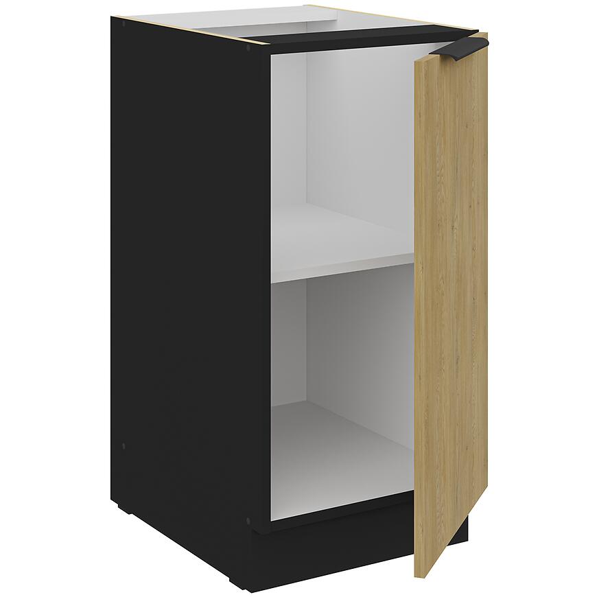 Szafka kuchenna Cremona to połączenie ponadczasowej elegancji i funkcjonalnego designu, idealne dla osób ceniących stylowe, a zarazem praktyczne rozwiązania do kuchni. Meble z kolekcji CREMONA wyróżniają się wyjątkowym zestawieniem kolorystycznym – fronty w odcieniu dąb cremona doskonale komponują się z czarnym korpusem, tworząc efektowny, nowoczesny kontrast. Taka kolorystyka świetnie sprawdzi się zarówno w minimalistycznych, jak i industrialnych aranżacjach wnętrz.
