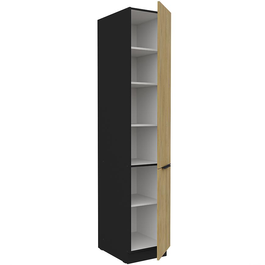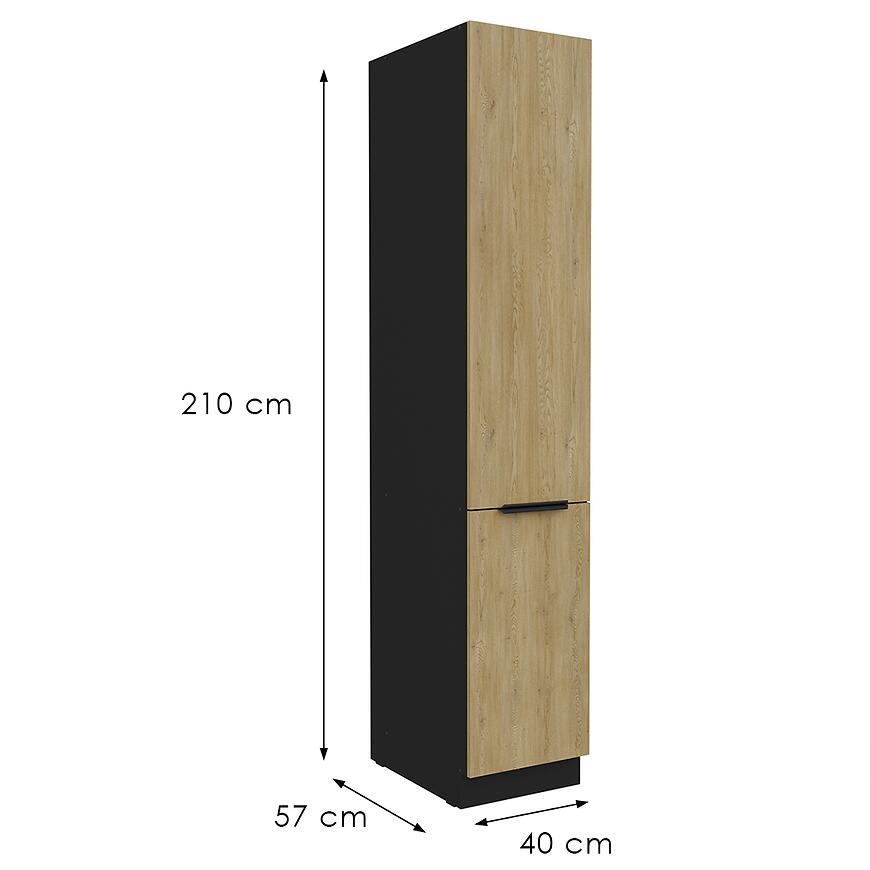Szafka kuchenna Cremona to połączenie ponadczasowej elegancji i funkcjonalnego designu, idealne dla osób ceniących stylowe, a zarazem praktyczne rozwiązania do kuchni. Meble z kolekcji CREMONA wyróżniają się wyjątkowym zestawieniem kolorystycznym – fronty w odcieniu dąb cremona doskonale komponują się z czarnym korpusem, tworząc efektowny, nowoczesny kontrast. Taka kolorystyka świetnie sprawdzi się zarówno w minimalistycznych, jak i industrialnych aranżacjach wnętrz.