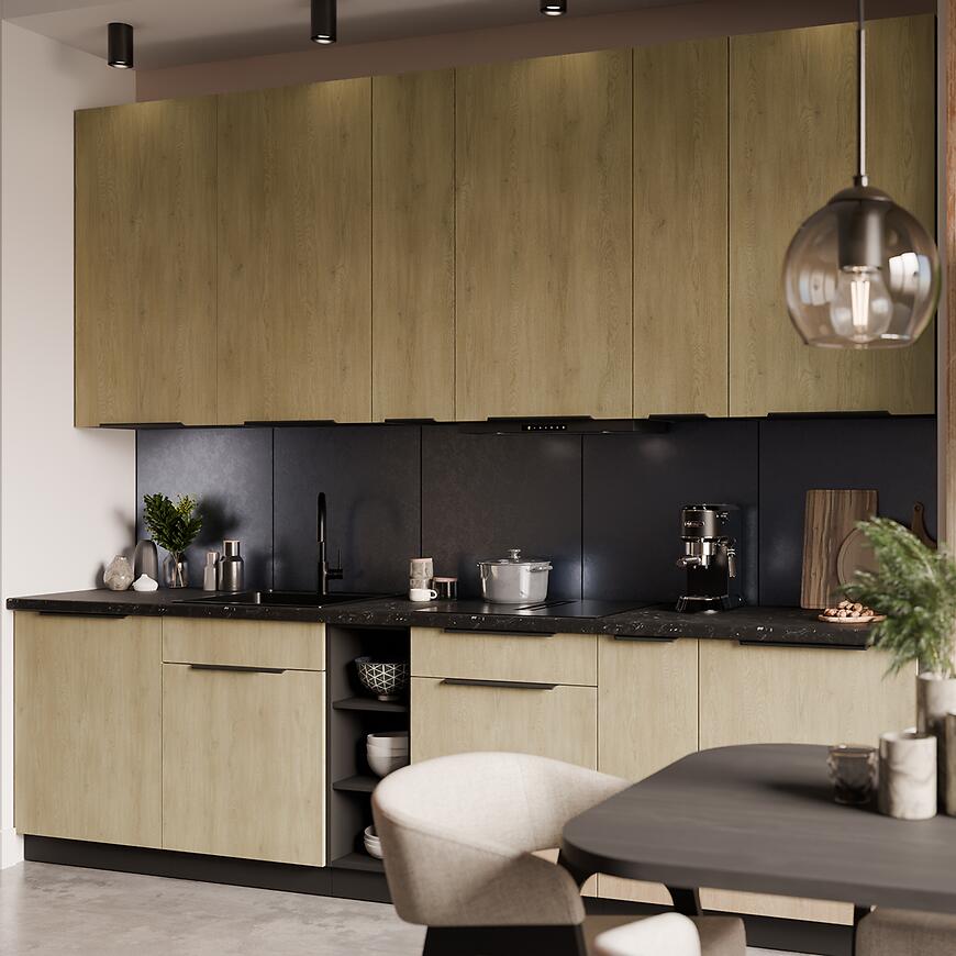 Szafka Kuchenna Cremona to idealne połączenie nowoczesnego stylu i praktycznego designu, które wprowadzi do Twojej kuchni elegancję i harmonię. Meble z kolekcji CREMONA wyróżniają się wyjątkowym połączeniem kolorystycznym – fronty w odcieniu dąb cremona doskonale komponują się z czarnym korpusem, tworząc wyrafinowany i nowoczesny kontrast. Dzięki matowemu wykończeniu szafka prezentuje się niezwykle stylowo i nadaje wnętrzu przytulny, a zarazem elegancki charakter.