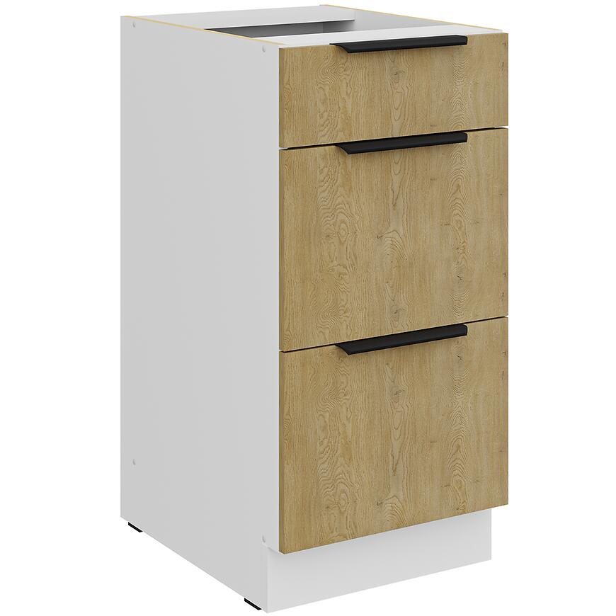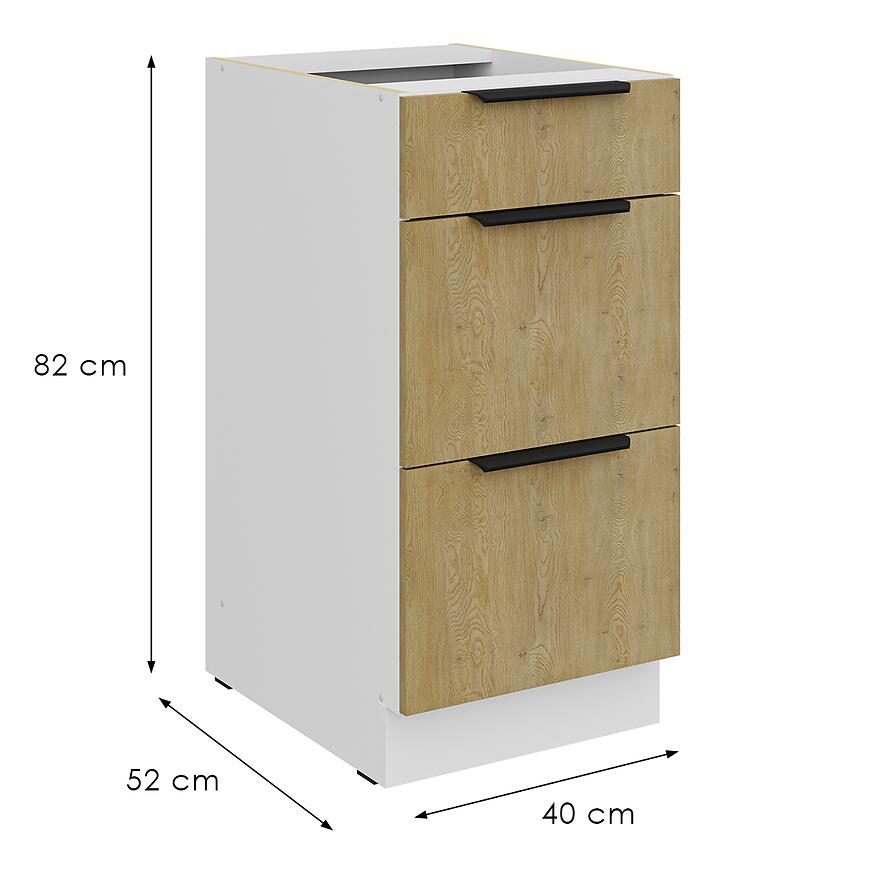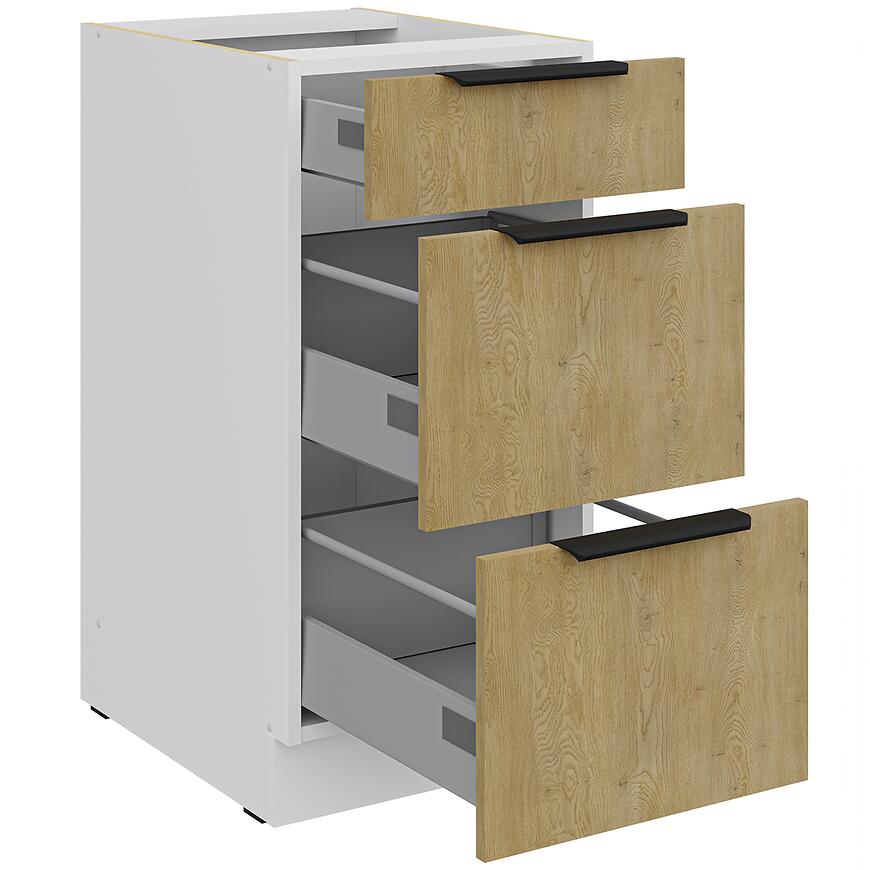 Model został zaprojektowany z dbałością o każdy detal – cokół w kolorze korpusu tworzy spójną całość, podkreślając harmonijny wygląd całej zabudowy. Szafka nie posiada nóg ani blatu w zestawie, co pozwala na indywidualne dopasowanie elementów do aranżacji i stylu kuchni.