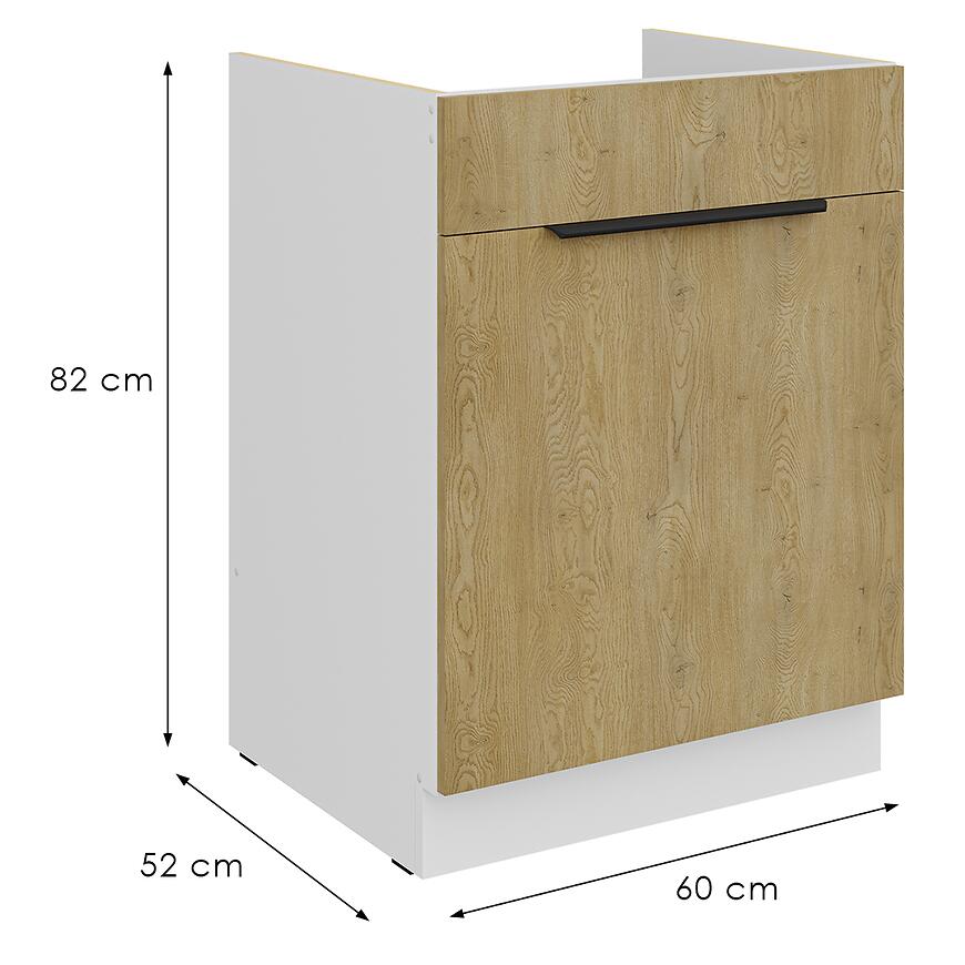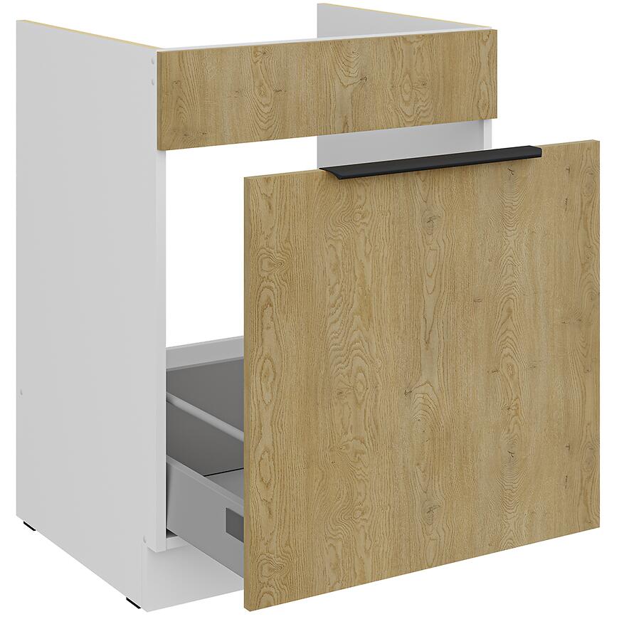 Model został zaprojektowany z dbałością o każdy detal – cokół w kolorze korpusu tworzy spójną całość, podkreślając harmonijny wygląd całej zabudowy. Szafka nie posiada nóg ani blatu w zestawie, co pozwala na indywidualne dopasowanie elementów do aranżacji i stylu kuchni.