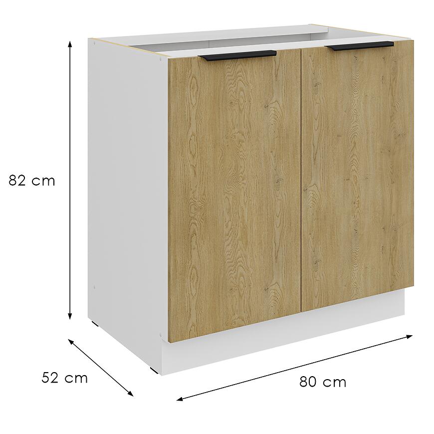 Model został zaprojektowany z dbałością o każdy detal – cokół w kolorze korpusu tworzy spójną całość, podkreślając harmonijny wygląd całej zabudowy. Szafka nie posiada nóg ani blatu w zestawie, co pozwala na indywidualne dopasowanie elementów do aranżacji i stylu kuchni.