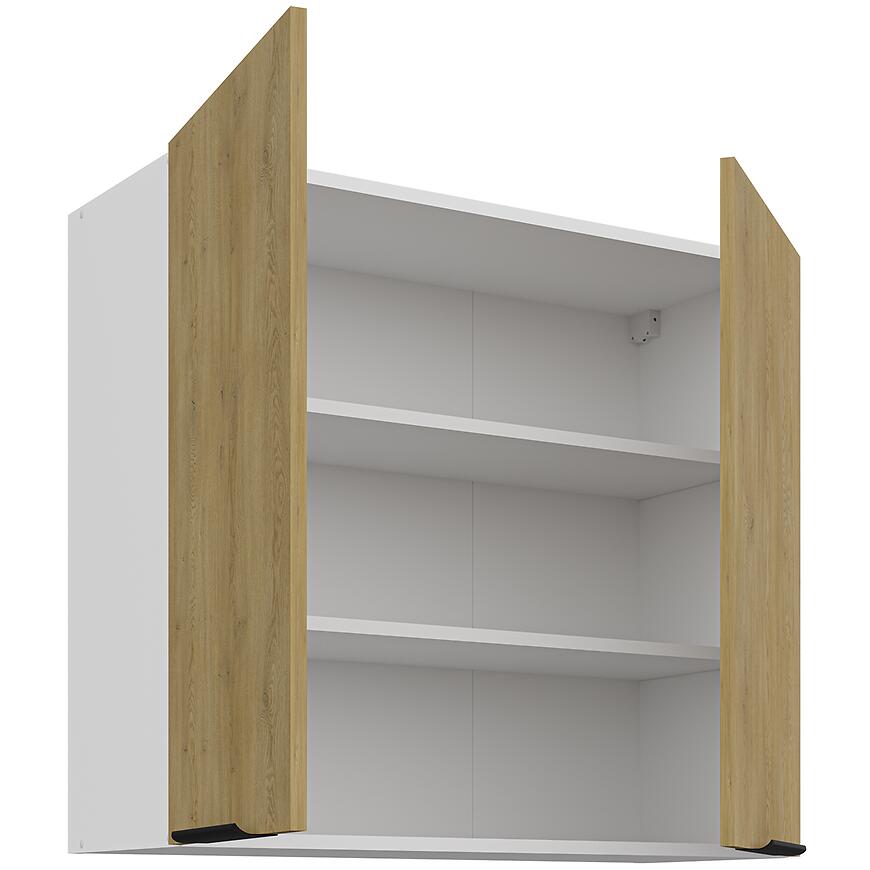 Korpus i fronty szafki zostały wykonane z trwałej płyty wiórowej laminowanej, odpornej na wilgoć, uszkodzenia mechaniczne i codzienne użytkowanie. Matowe wykończenie podkreśla subtelną strukturę drewna, nadając meblowi ponadczasowy wygląd i łatwość w utrzymaniu czystości.