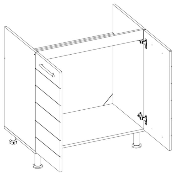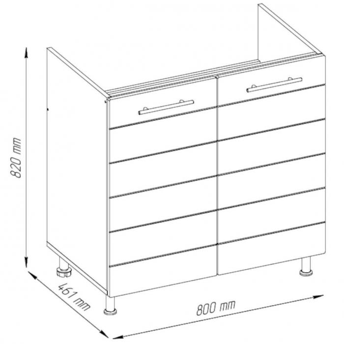 Kuchnia Daria to zestawienie nowoczesnego białego połysku/szary. Fronty kuchenne wykonane w zestawie są z płyty wiórowej laminowanej w kolorze białego połysku. Korpus kuchni wykonany jest z płyty wiórowej laminowanej w kolorze szarym. Zestaw kuchni Daria jest bardzo funkcjonalny. Produkt nie zawiera blatu w zestawie.