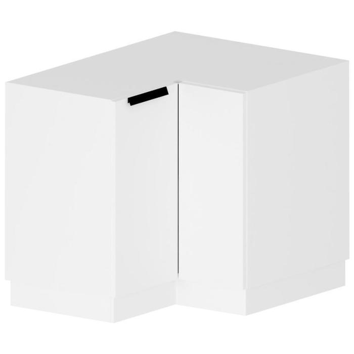 Fronty kuchenne wykonane z MDF foliowany z wykończeniem matowym, a korpusy w kolorze białym z płyty wiórowej laminowanej.