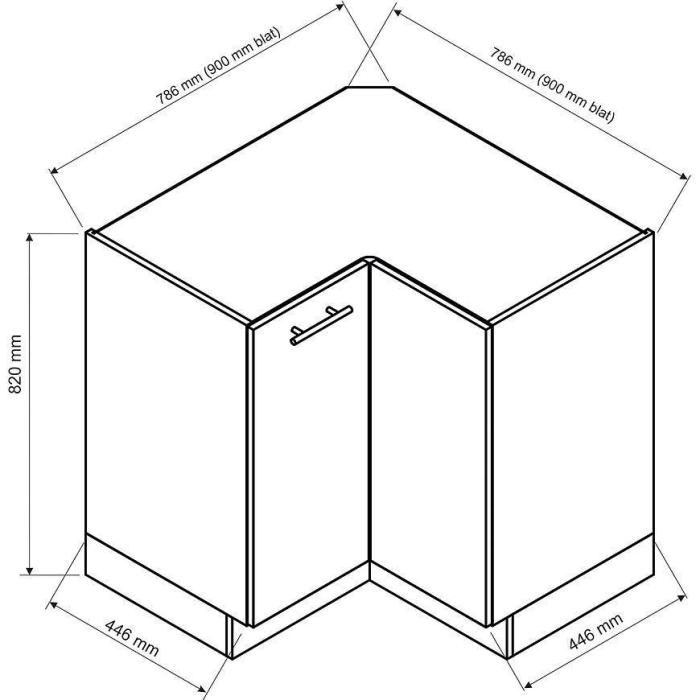 W kolekcji Denis znajdują się również słupki wysokie, które można wykorzystać jako miejsce do przechowywania butelek, a także szafki narożne, które wykorzystują niewykorzystane wcześniej przestrzenie.