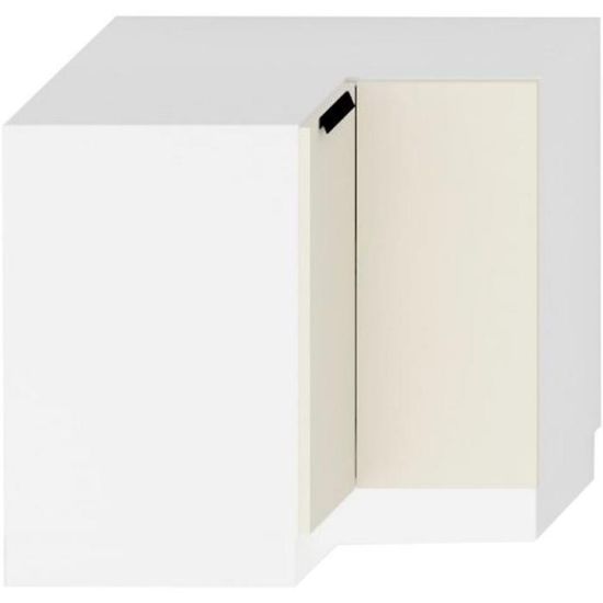 Fronty kuchenne wykonane z MDF foliowany z wykończeniem matowym, a korpusy w kolorze białym z płyty wiórowej laminowanej.