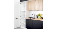 W kolekcji Denis znajdują się również słupki wysokie, które można wykorzystać jako miejsce do przechowywania butelek, a także szafki narożne, które wykorzystują niewykorzystane wcześniej przestrzenie.