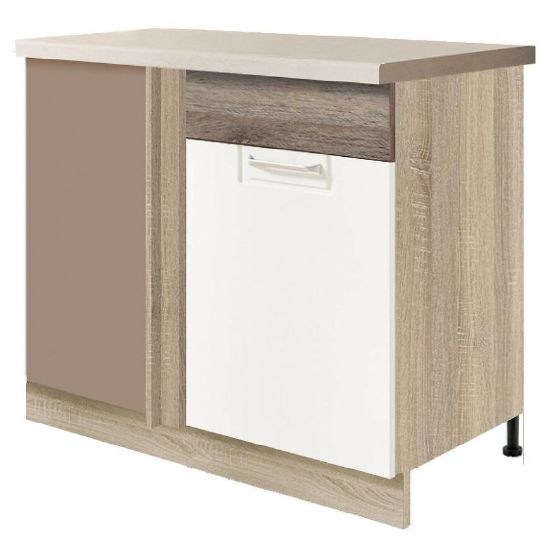 Kuchnia Econo to zestaw praktyczny i funkcjonalny. Połączenie koloru dąb sonoma, san remo i białego to ciekawe i ponadczasowe rozwiązanie. Fronty kuchenne wykonane w są z MDF foliowany. Korpus kuchni wykonany jest z płyty wiórowej laminowanej w kolorze dąb sonoma.