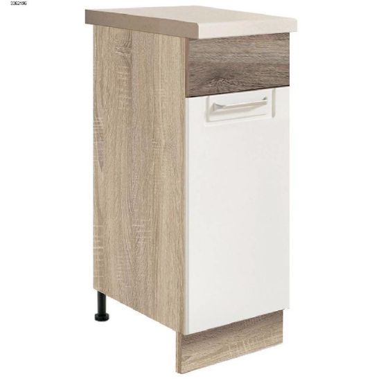 Kuchnia Econo to zestaw praktyczny i funkcjonalny. Połączenie koloru dąbu sonoma, san remo i białego to ciekawe i ponadczasowe rozwiązanie. Fronty kuchenne wykonane w są z MDF foliowany. Korpus kuchni wykonany jest z płyty wiórowej laminowanej w kolorze dąb sonoma.