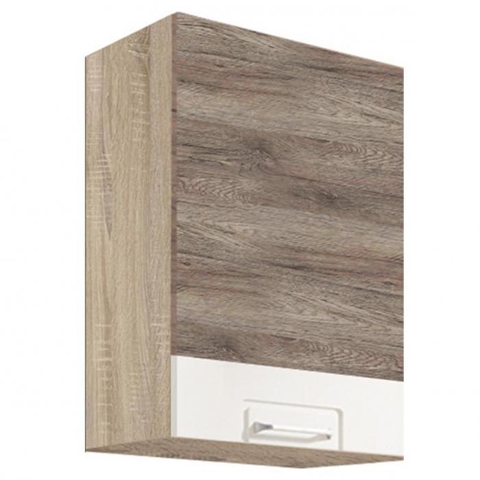 Dodatkowe informacje: kolor frontów: san remo/biały połysk, kolor korpusu: dąb sonoma wykończenie frontów: połysk/mat, prowadnice metalbox samohamowne, podnośniki do klap, zawiasy typu soft close, atestowane zawieszki z regulacją wysokości, duże metalowe uchwyty, mechanizm amortyzujący