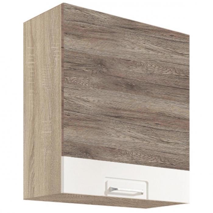Dodatkowe informacje: kolor frontów: san remo/biały połysk, kolor korpusu: dąb sonoma wykończenie frontów: połysk/mat, prowadnice metalbox samohamowne, podnośniki do klap, zawiasy typu soft close, atestowane zawieszki z regulacją wysokości, duże metalowe uchwyty, mechanizm amortyzujący