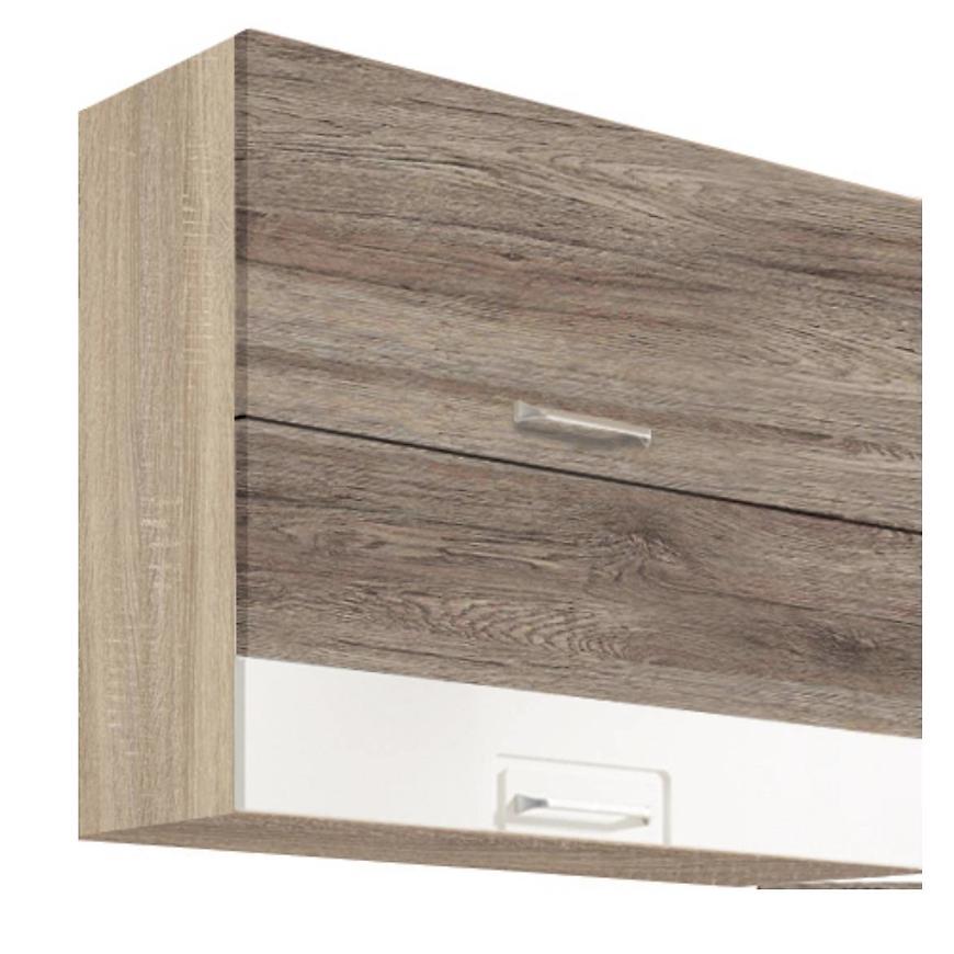 Kuchnia Econo to zestaw praktyczny i funkcjonalny. Połączenie odcieni drewnopodobnych z kolorem białym to uniwersalne i ponadczasowe rozwiązanie. Fronty kuchenne wykonane w są z MDF foliowany. Korpus kuchni wykonany jest z płyty wiórowej laminowanej w kolorze dębu sonomy.