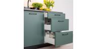 Charakterystyczną cechą kolekcji Emily jest jej dekor dostępny w zielonym matowym wykończeniu z subtelnymi elementami w białym kolorze. To połączenie nadaje meblom niepowtarzalnego uroku i sprawia, że będą one doskonale komponować się w nowoczesnych aranżacjach kuchennych.