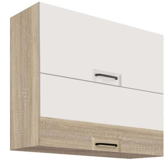 Kuchnia Favorita to zestaw praktyczny i funkcjonalny. Połączenie odcieni bieli z kolorem dębu sonomy to uniwersalne i ponadczasowe rozwiązanie. Fronty kuchenne wykonane w są z MDF foliowany. Korpus kuchni wykonany jest z płyty wiórowej laminowanej w kolorze dębu sonomy.