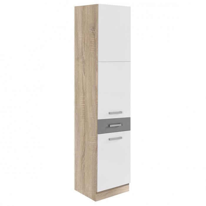 Kuchnia Global nada wnętrzu nowoczesności, ale sprawi także, że pomieszczenie będzie bardzo przytulne. W zestawie zastosowano proste lekkie bryły, dzięki czemu kuchnia nabiera eleganckiego charakteru i wydaje się też być bardziej przestronna. Do wyboru górne i dolne szafki kuchenne wykonane z wysokiej jakości trwałych materiałów, co podczas użytkowania jest bardzo ważne. Fronty kuchenne wykonane z płyty laminowanej w kolorze szary/biały połysk. Korpus kuchni wykonany jest natomiast z płyty wiórowej laminowanej w kolorze dąb sonoma. Kuchnia z pewnością fantastycznie sprawdzi się w codziennym użytkowaniu.