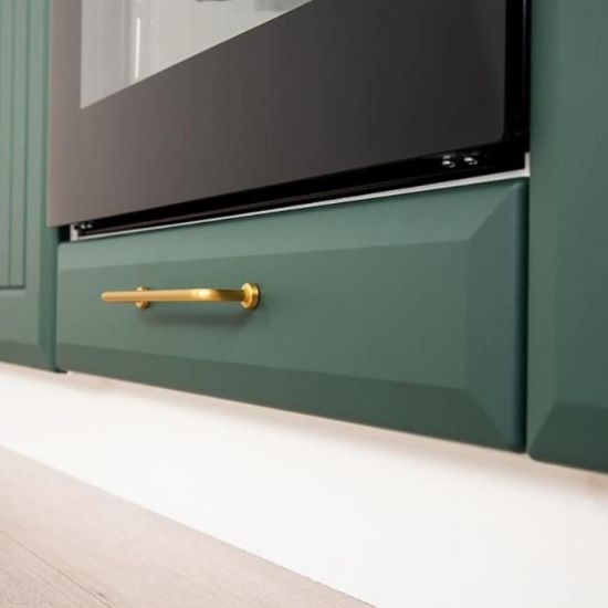 Kolekcja szafek kuchennych Irma może być nie tylko funkcjonalnym wykończeniem Twojej kuchni, ale także estetycznym dopełnieniem wnętrza. Ciemno zielone matowe fronty idealnie kontrastują z białym korpusem, tworząc przytulne, ale także pełne charakteru wnętrze. Zielony kolor frontów będzie świetnie korespondował z drewnianym blatem, a także z betonem, marmurem czy inny surowym materiałem. Dodatkowy element ozdobny szafek stanowią lamele umieszczone na frontach, dodając im przy tym uroku, jednocześnie wpisując się idealnie w nowoczesne czy klasyczne aranżacje. Różnorodne gałki i uchwyty dostepne w naszej ofercie świetnie dopełnią całość, stanowiąc ciekawy akcent. Cichy domyk, który jest ujęty w zestawie podniesie komfort codziennego użytkowania mebli.