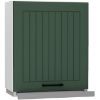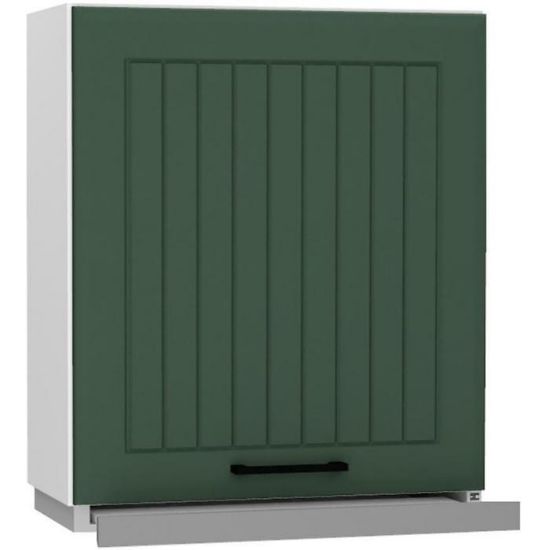 Kolekcja szafek kuchennych Irma może być nie tylko funkcjonalnym wykończeniem Twojej kuchni, ale także estetycznym dopełnieniem wnętrza. Ciemno zielone matowe fronty idealnie kontrastują z białym korpusem, tworząc przytulne, ale także pełne charakteru wnętrze. Zielony kolor frontów będzie świetnie korespondował z drewnianym blatem, a także z betonem, marmurem czy inny surowym materiałem. Dodatkowy element ozdobny szafek stanowią lamele umieszczone na frontach, dodając im przy tym uroku, jednocześnie wpisując się idealnie w nowoczesne czy klasyczne aranżacje. Różnorodne gałki i uchwyty dostepne w naszej ofercie świetnie dopełnią całość, stanowiąc ciekawy akcent. Cichy domyk, który jest ujęty w zestawie podniesie komfort codziennego użytkowania mebli.