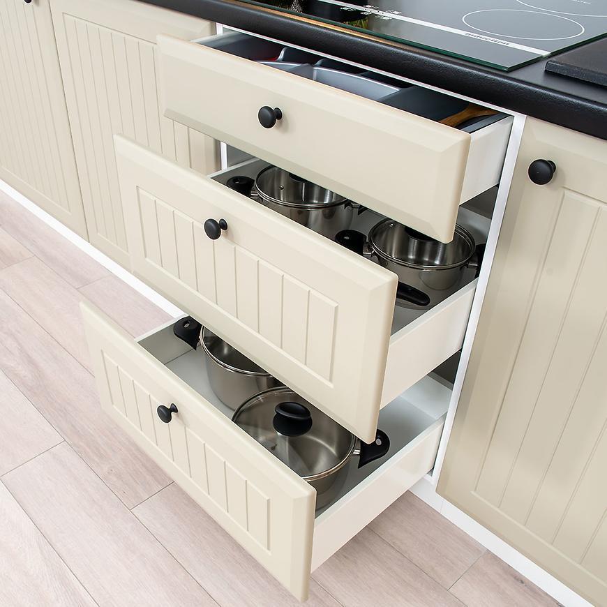 Aby dopełnić całość, kolekcja Emily zachęca do dokupienia uchwytów, które dodadzą meblom indywidualnego charakteru. Dodatkowo, do zestawu należy dokupić blat i sprzęty AGD, które umożliwią kompleksowe urządzenie Twojej kuchni.
