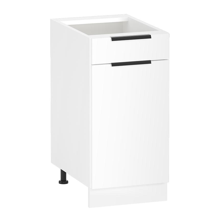 Szafka kuchenna z kolekcji Kam Set to połączenie funkcjonalności, nowoczesnego designu i solidnej konstrukcji. Kolorystyka frontów utrzymana w biały platynowy tworzy harmonijną przestrzeń, podczas gdy biały korpus dodaje lekkości i optycznej przestrzeni.