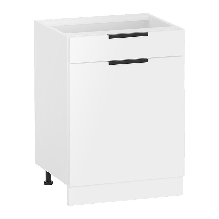 Szafka kuchenna z kolekcji Kam Set to połączenie funkcjonalności, nowoczesnego designu i solidnej konstrukcji. Kolorystyka frontów utrzymana w biały platynowy tworzy harmonijną przestrzeń, podczas gdy biały korpus dodaje lekkości i optycznej przestrzeni.