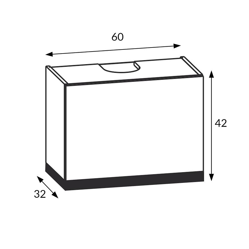 Konstrukcja szafki oparta jest na solidnej płycie wiórowej laminowanej, co gwarantuje trwałość mebla i odporność na uszkodzenia. Matowe wykończenie korpusu nadaje szafce elegancji, jednocześnie ułatwiając utrzymanie go w nienagannej czystości.