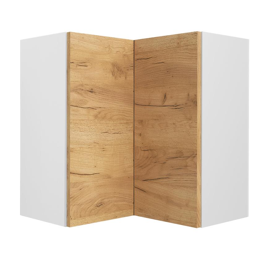 Szafka kuchenna z kolekcji Kam Set to harmonia funkcjonalności i nowoczesnego designu, która wniesie elegancję do Twojej kuchni. Kolorystyka frontów utrzymana w ciepłym odcieniu złotego dębu tworzy przyjemną atmosferę, podczas gdy biały korpus dodaje lekkości i optycznej przestrzeni.