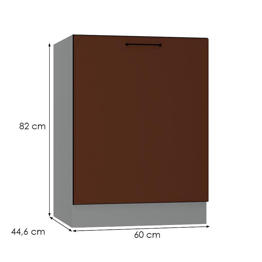 Korpus szafki KATRIN wykonana z płyty wiórowej utrzymany jest w delikatnym odcieniu popielu, co tworzy harmonijny kontrast z intensywnymi ceglastymi frontami. Cokół w kolorze korpusu nadaje elegancji i spójności całej konstrukcji.