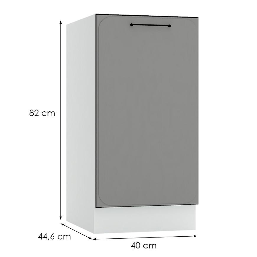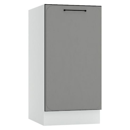Fronty szafki w stonowanym odcieniu szarości nadają meblowi eleganckiego charakteru. Matowe wykończenie frontów podkreśla nowoczesny design, dodając mu subtelności i wyjątkowego uroku. Korpus w delikatnym odcieniu popielu stanowi idealne tło dla szarości frontów. Całość tworzy spójny i harmonijny wygląd mebla. Dodatkowo, cokół w kolorze korpusu nie tylko dodaje elegancji, ale także chroni mebel przed uszkodzeniami.