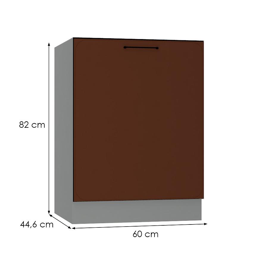 Korpus szafki KATRIN wykonana z płyty wiórowej utrzymany jest w delikatnym odcieniu popielu, co tworzy harmonijny kontrast z intensywnymi ceglastymi frontami. Cokół w kolorze korpusu nadaje elegancji i spójności całej konstrukcji.