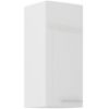 Fronty szafki wykończone błyszczącą powłoką dodają wnętrzu świeżości i nowoczesnego charakteru. Konstrukcja frontów oparta jest na wysokiej jakości płycie wiórowej laminowanej, co gwarantuje trwałość i odporność na uszkodzenia. Dodatkowo, wykończenie korpusu w matowym białym kolorze dodaje szafce subtelności i elegancji.