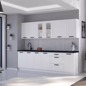 Kolekcja mebli do kuchni Luna to wyjątkowa oferta dla wszystkich miłośników nowoczesnego i klasycznego stylu w aranżacji wnętrz. Zapewniając funkcjonalność i estetykę, ta kolekcja doskonale wpisuje się w potrzeby współczesnych użytkowników. Główne cechy produktu, które podkreślają wysoką jakość i zadowolenie z użytkowania, to wykorzystanie płyty wiórowej laminowanej i MDF jako materiałów konstrukcyjnych, dostępność w dekorze białym oraz matowe wykończenie frontów i korpusów mebli.