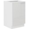 Fronty szafki, wykonane z płyty wiórowej laminowanej, prezentują się niezwykle nowocześnie dzięki efektowi połysku. To wykończenie nadaje meblowi wyjątkowego blasku, który podkreśla elegancję kuchennego otoczenia. Z kolei matowe wykończenie korpusu nadaje meblowi subtelny i stonowany wygląd, równoważąc efekt połyskliwych frontów.