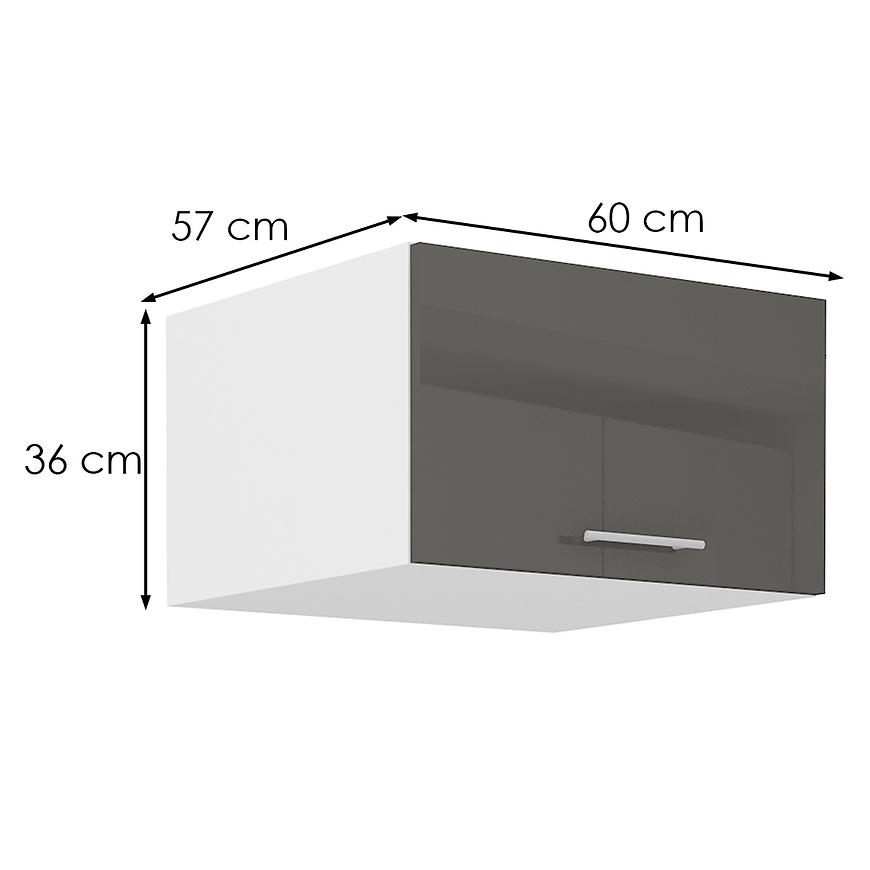 Szary kolor frontów dodaje nowoczesnego charakteru, a ich połysk szlachetności. Konstrukcja frontów z płyty wiórowej laminowanej gwarantuje trwałość i estetykę. Kolor biały korpusu doskonale kontrastuje z szarością, tworząc harmonijną całość.