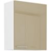 Fronty szafki, utrzymane w ciepłym odcieniu cappuccino, nadają kuchni niepowtarzalny, przytulny charakter. Błyszczące wykończenie frontów dodaje wnętrzu nowoczesnego blasku, natomiast matowy biały kolor korpusu tworzy harmonijny kontrast.
