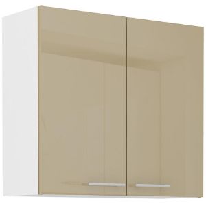 Fronty szafki, utrzymane w ciepłym odcieniu cappuccino, nadają kuchni niepowtarzalny, przytulny charakter. Błyszczące wykończenie frontów dodaje wnętrzu nowoczesnego blasku, natomiast matowy biały kolor korpusu tworzy harmonijny kontrast.