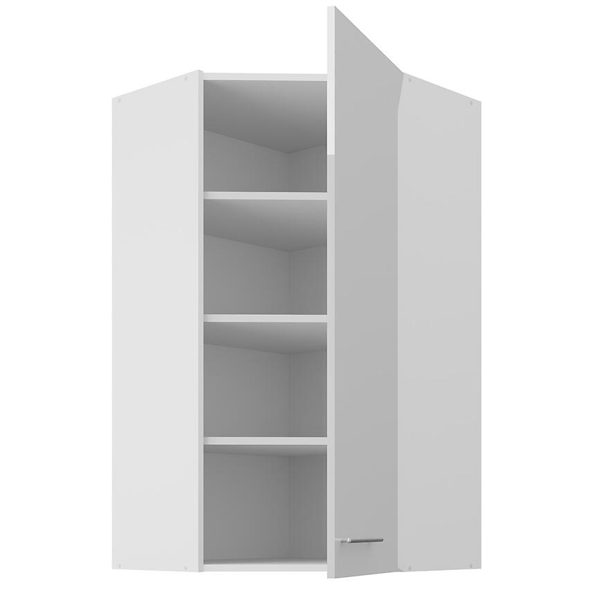 Szafka kuchenna Lara biały 60x60 GN-108 1F (45°) to praktyczny i stylowy narożny moduł górnej zabudowy kuchennej, idealny do nowoczesnych i jasnych wnętrz. Należy do kolekcji LARA, wyróżniającej się połyskującymi frontami i jednolitą kolorystyką. Narożna konstrukcja 45° oraz wymiary 60x60 cm pozwalają maksymalnie wykorzystać przestrzeń narożną, oferując wygodne miejsce do przechowywania naczyń, akcesoriów kuchennych i produktów spożywczych.