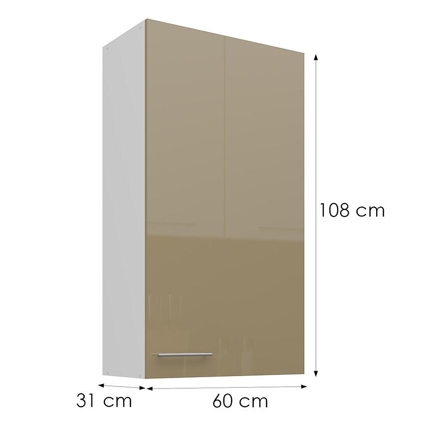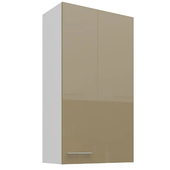 Szafka kuchenna Lara cappucino 60G-108 1F to nowoczesny i funkcjonalny element zabudowy kuchennej, idealny do jasnych, przestronnych wnętrz. Należy do kolekcji LARA, która łączy eleganckie kolory z modnym połyskiem frontów. Górna szafka o szerokości 60 cm zapewnia praktyczne miejsce do przechowywania naczyń, produktów spożywczych i akcesoriów kuchennych, stanowiąc wygodny element modułowej zabudowy kuchni.