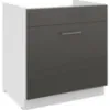 Szafka Lara 80ZL 1S BB grey oferuje wygodne miejsce pod zlew, umożliwiając funkcjonalne przechowywanie akcesoriów kuchennych. Wymiary 80x52x82 cm sprawiają, że szafka świetnie sprawdzi się zarówno w większych, jak i mniejszych kuchniach.