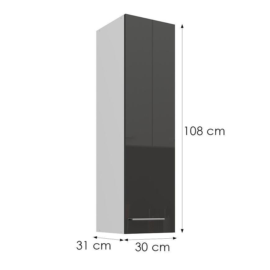Szafka kuchenna Lara szary 30G-108 1F to nowoczesny i praktyczny element górnej zabudowy kuchennej, idealny do jasnych i stylowych wnętrz. Należy do kolekcji LARA, wyróżniającej się połyskującymi frontami w szarym kolorze oraz minimalistycznym designem. Górna szafka o szerokości 30 cm oferuje wygodne miejsce do przechowywania naczyń, akcesoriów kuchennych i produktów spożywczych, sprawdzając się zarówno w większych, jak i kompaktowych kuchniach.
