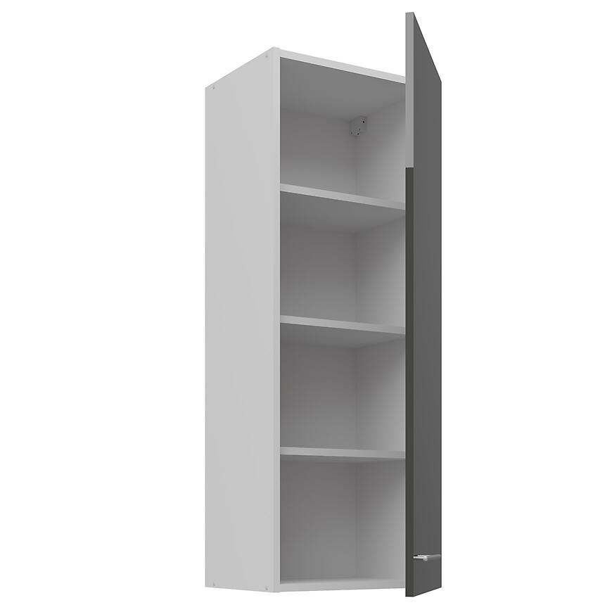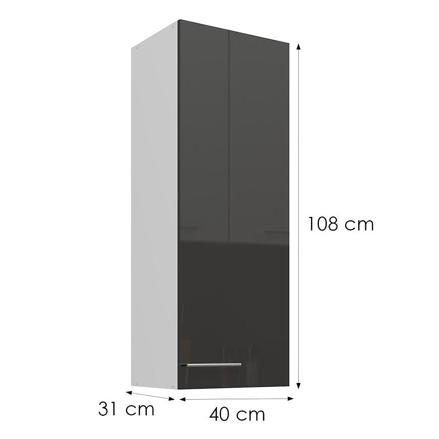 Szafka kuchenna Lara szary 40G-108 1F to elegancki i praktyczny element górnej zabudowy kuchennej, idealny do nowoczesnych, jasnych wnętrz. Należy do kolekcji LARA, wyróżniającej się połyskującymi frontami w szarym kolorze oraz minimalistycznym, uniwersalnym designem. Górna szafka o szerokości 40 cm zapewnia wygodne miejsce do przechowywania naczyń, akcesoriów kuchennych i produktów spożywczych, doskonale sprawdzając się zarówno w większych, jak i mniejszych kuchniach.
