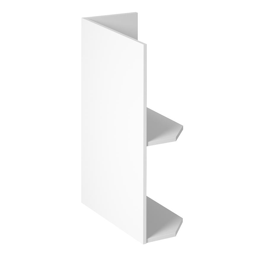 Korpus szafki, również w białym kolorze, jest wykończony matową powierzchnią, co nadaje mu elegancji i łatwości w utrzymaniu czystości. Zarówno fronty, jak i korpus wykonane są z trwałej płyty wiórowej laminowanej, co zapewnia solidność i trwałość mebla.