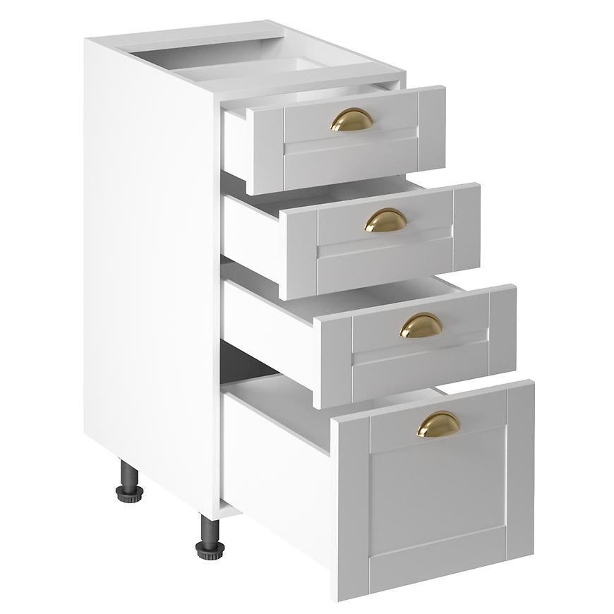 Nogi w zestawie pozwalają na stabilne umieszczenie mebla w kuchni, zapewniając odpowiednią wysokość. Należy pamiętać, że blat nie jest częścią zestawu, więc będziesz musiał/a go dokupić osobno. Szafka nie posiada także cichego domyku, co warto wziąć pod uwagę przy jej użytkowaniu.
