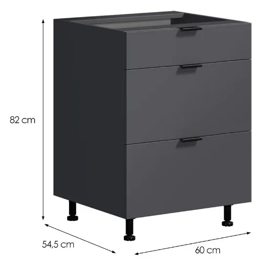 Szafka Kuchenna LOFT II D60 3SZ METALBOX grafit
