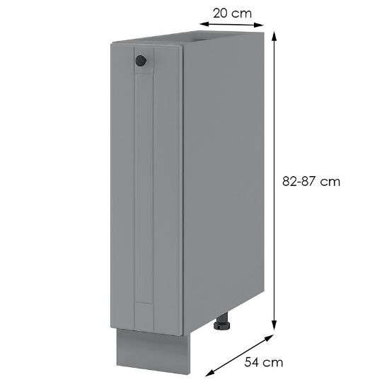 Szafka kuchenna Cargo Lora to niezwykle praktyczne i stylowe rozwiązanie do Twojej kuchni. Dzięki możliwości regulacji wysokości - od 82 cm do 87 cm - możesz dostosować ją do indywidualnych potrzeb. Jej niewielka szerokość, wynosząca 20 cm, sprawia, że idealnie wpasuje się w każdą przestrzeń, bez zajmowania zbyt dużo miejsca.