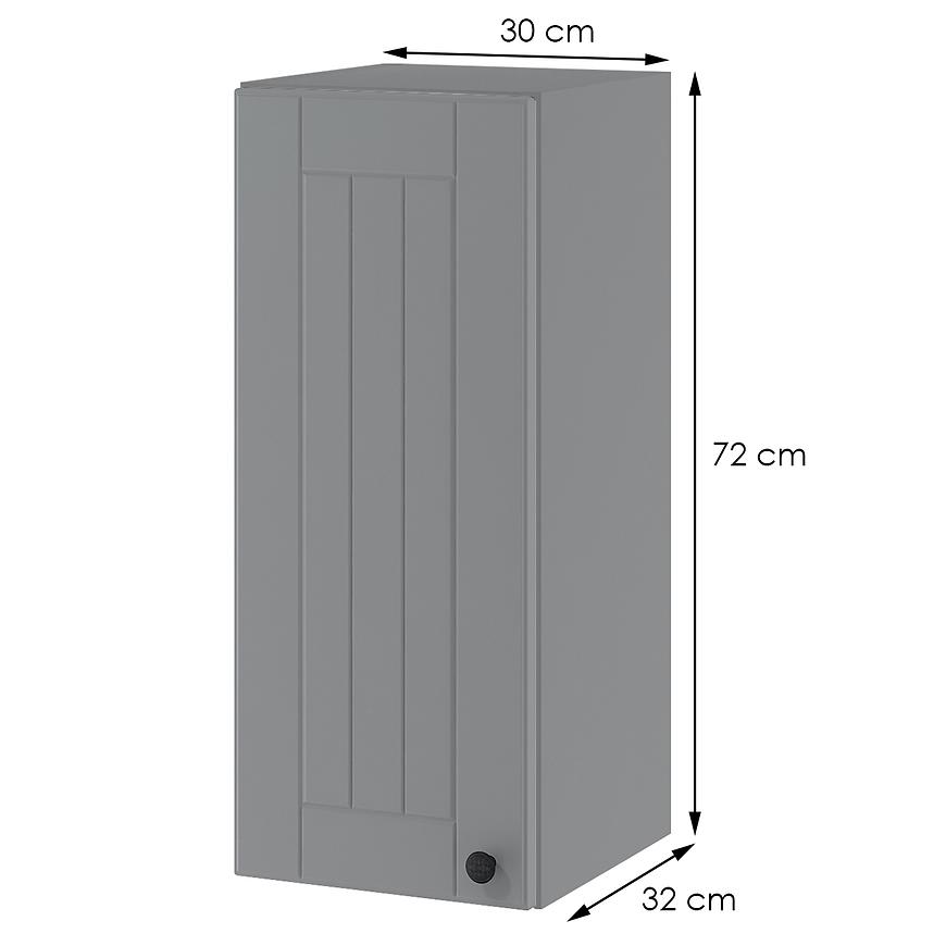 Frezowane fronty wykonane są z foliowanej płyty MDF, a dodatkowo matowe wykończenie nadaje im subtelnego, nowoczesnego wyglądu. Fronty w szarym kolorze stanowią idealne dopełnienie dla korpusu szafki i cokołu, który również utrzymany jest w szarości. Konstrukcja korpusu opiera się na wytrzymałej płycie wiórowej, co gwarantuje trwałość i solidność. Szafkę można zamontować w górnym segmencie kuchni, co pozwala na praktyczne zagospodarowanie przestrzeni kuchennej. Dodatkowo, w zestawie znajduje się cichy domyk, co sprawia, że korzystanie z tej szafki jest nie tylko stylowe, ale także komfortowe.